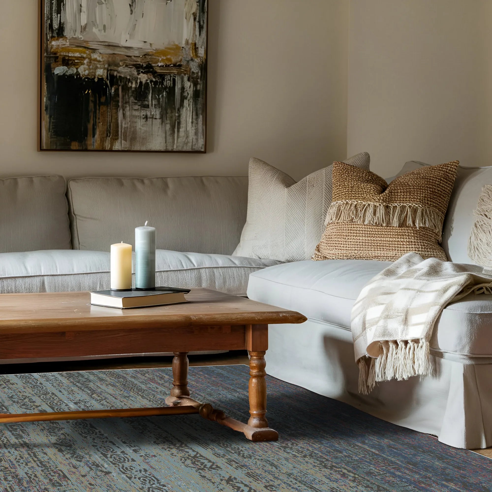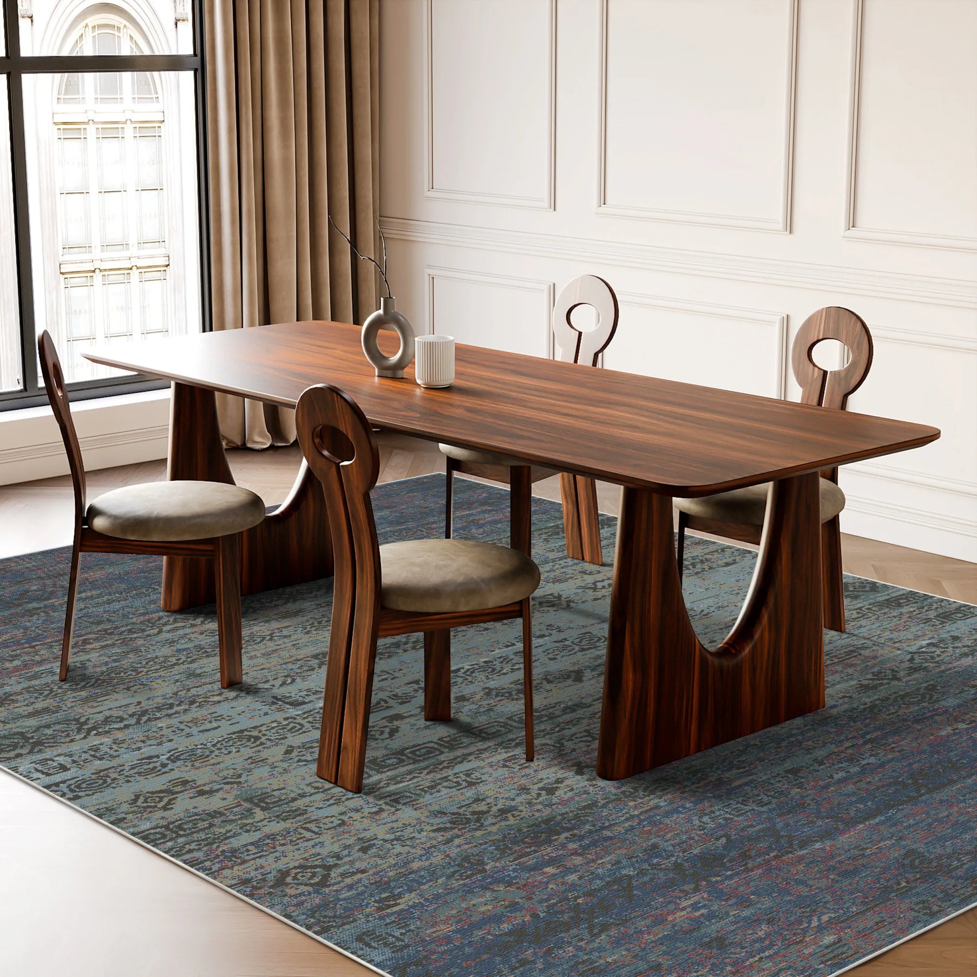 Піднесіть своє святилище ефемерною красою та багатошаровою історією килима з абстрактним племінним мотивом каньйону Антилопи, який можна прати . Натхненний вивітреними текстурами стародавнього пісковика та прохолодними атмосферними тонами затіненої долини, цей дизайн пропонує захоплююче поєднання традиційних символів кабіле та сучасної абстракції. Килим має серію горизонтальних гравійованих смуг, де примітивні геометричні мотиви та орнаментальні бордюри виникають і зникають, немов далекі спогади, вирізьблені в камені. Вишукана палітра глибокого темно-синього, сланцево-сірого та туманно-вугільного відтінків перетікає по поверхні, створюючи відчуття глибокого руху та тихої сили. Це неперевершений вибір для похмурого індустріального лофту, спокійної головної спальні або сучасного домашнього офісу, який прагне поєднати історичну глибину з елегантною мінімалістичною естетикою.