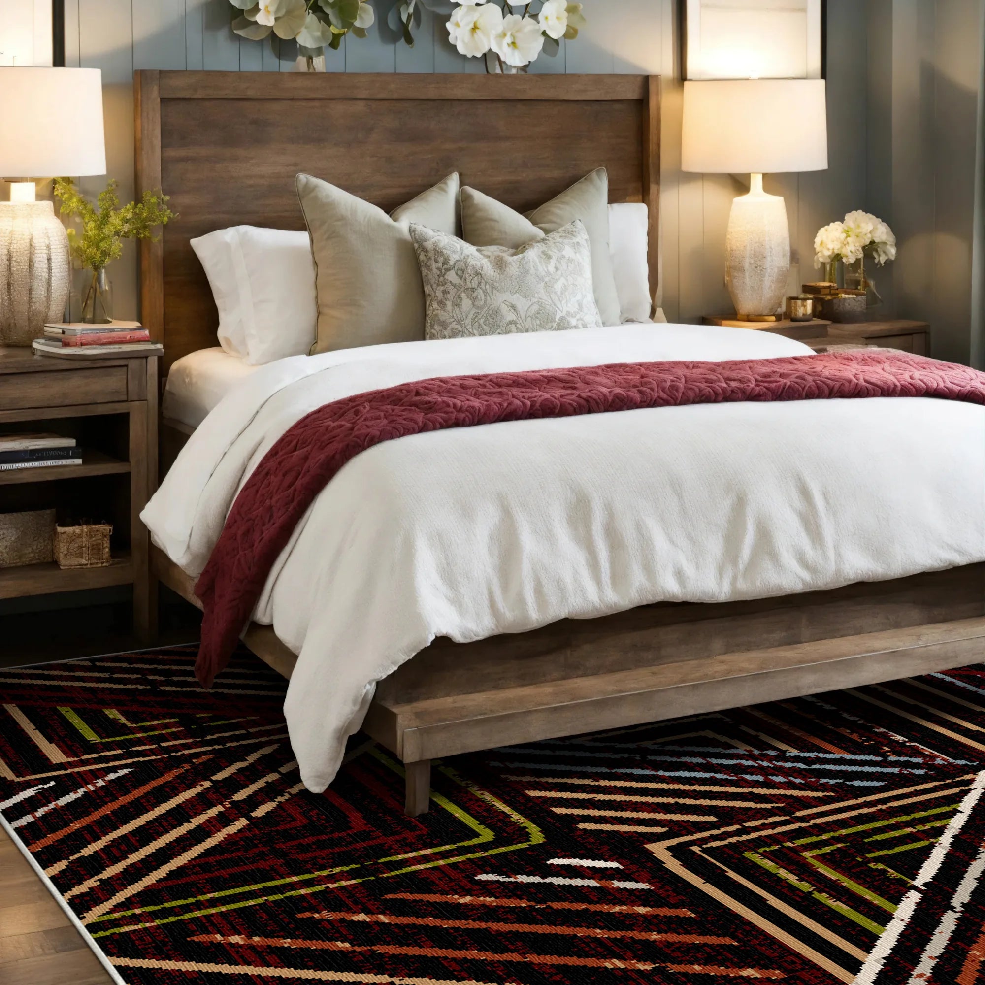 Додайте своєму простору глибокої, захопливої чарівності геометричного килима Midnight Canyon, що можна прати . Цей сміливий фінал нашої геометричної серії створює драматичний настрій завдяки структурованому лінійному візерунку з плитки на насиченому вугільному та еспресо фоні. Темне полотно підсвічується вражаючими геометричними лініями іржаво-помаранчевого, оливково-зеленого та сталево-блакитного кольорів, створюючи яскравий, але вишуканий контраст, що нагадує пустельний пейзаж під нічним небом. Це найкращий витвір мистецтва для індустріальних лофтів, сільських сучасних кабінетів або будь-якої кімнати, яка вимагає нотки сміливого, художнього характеру.