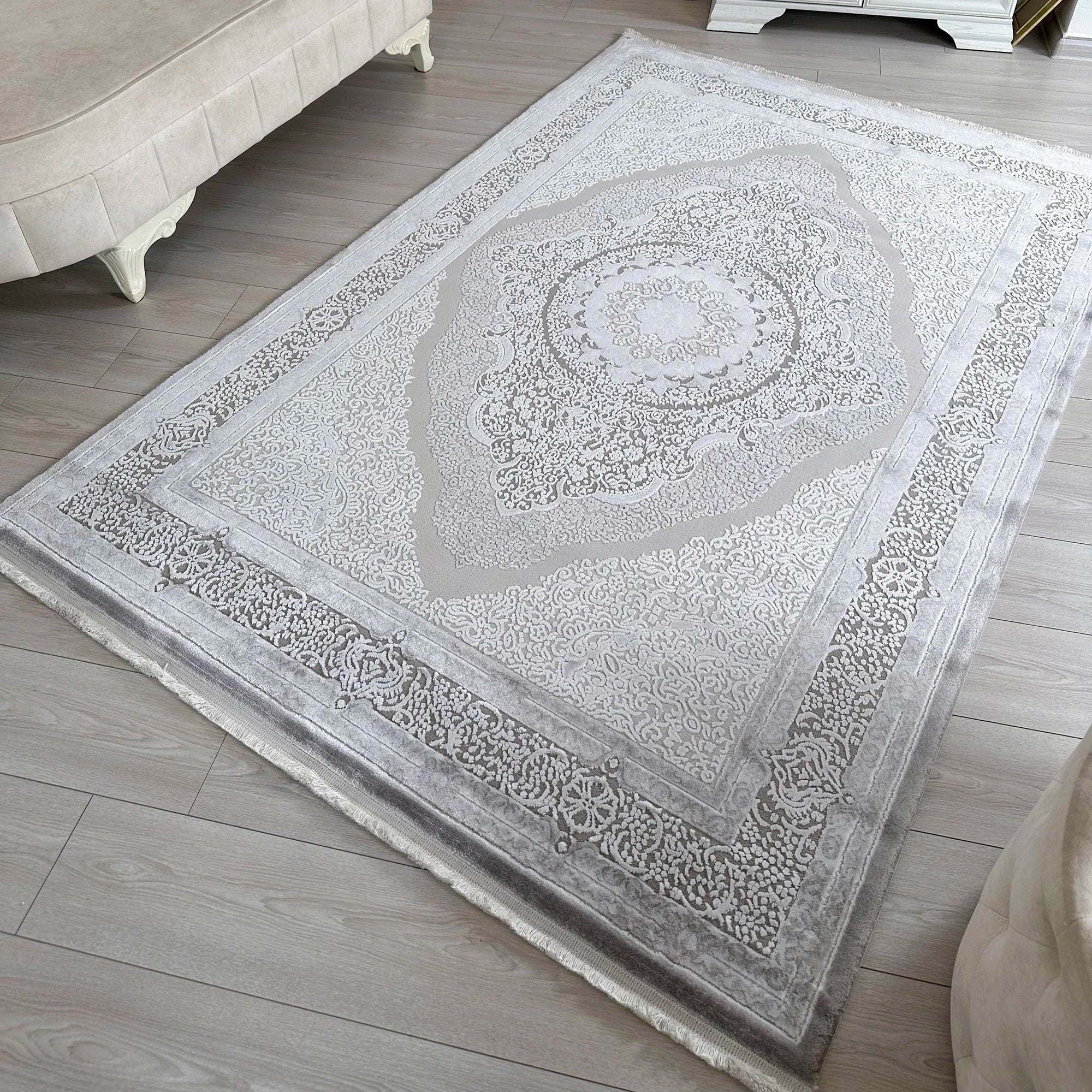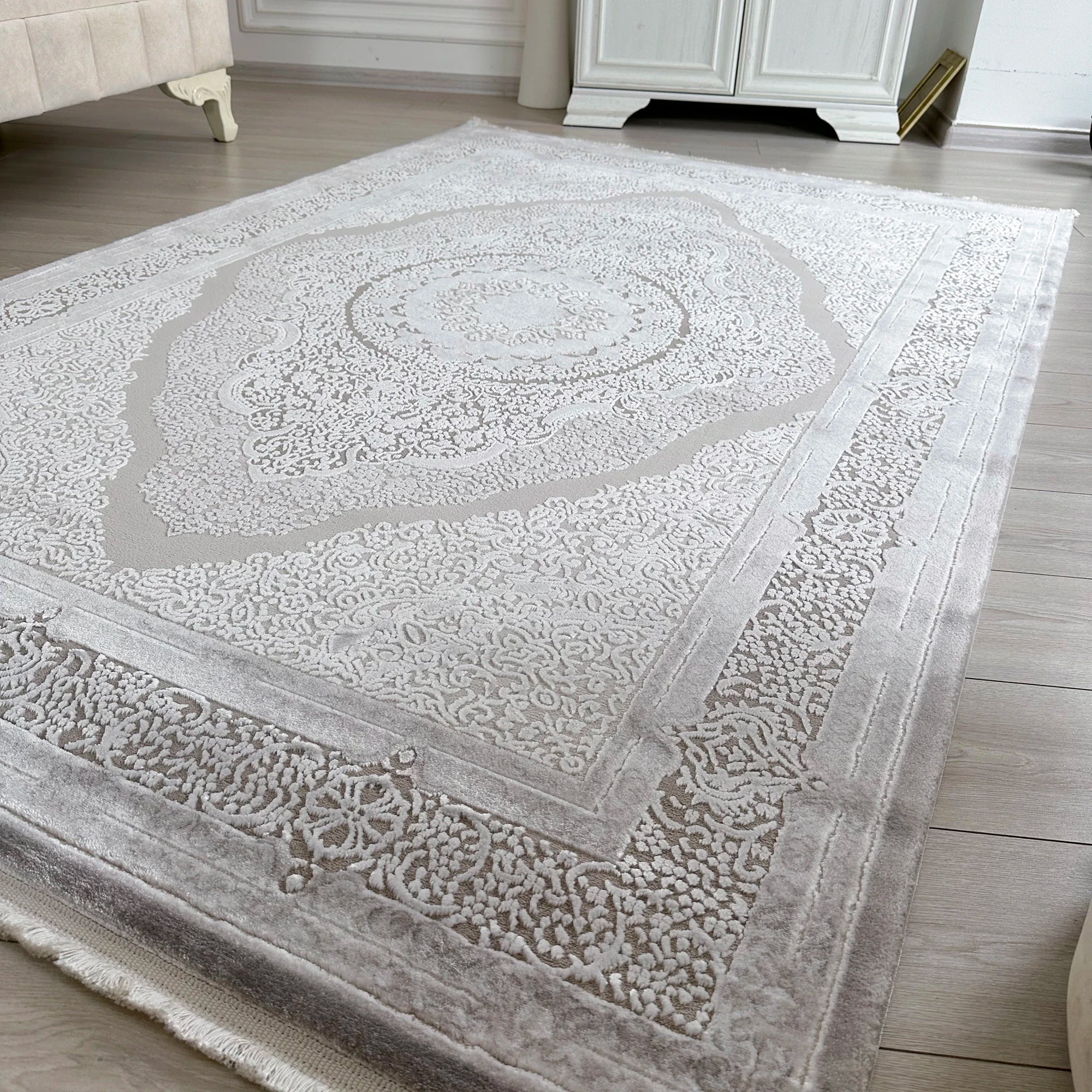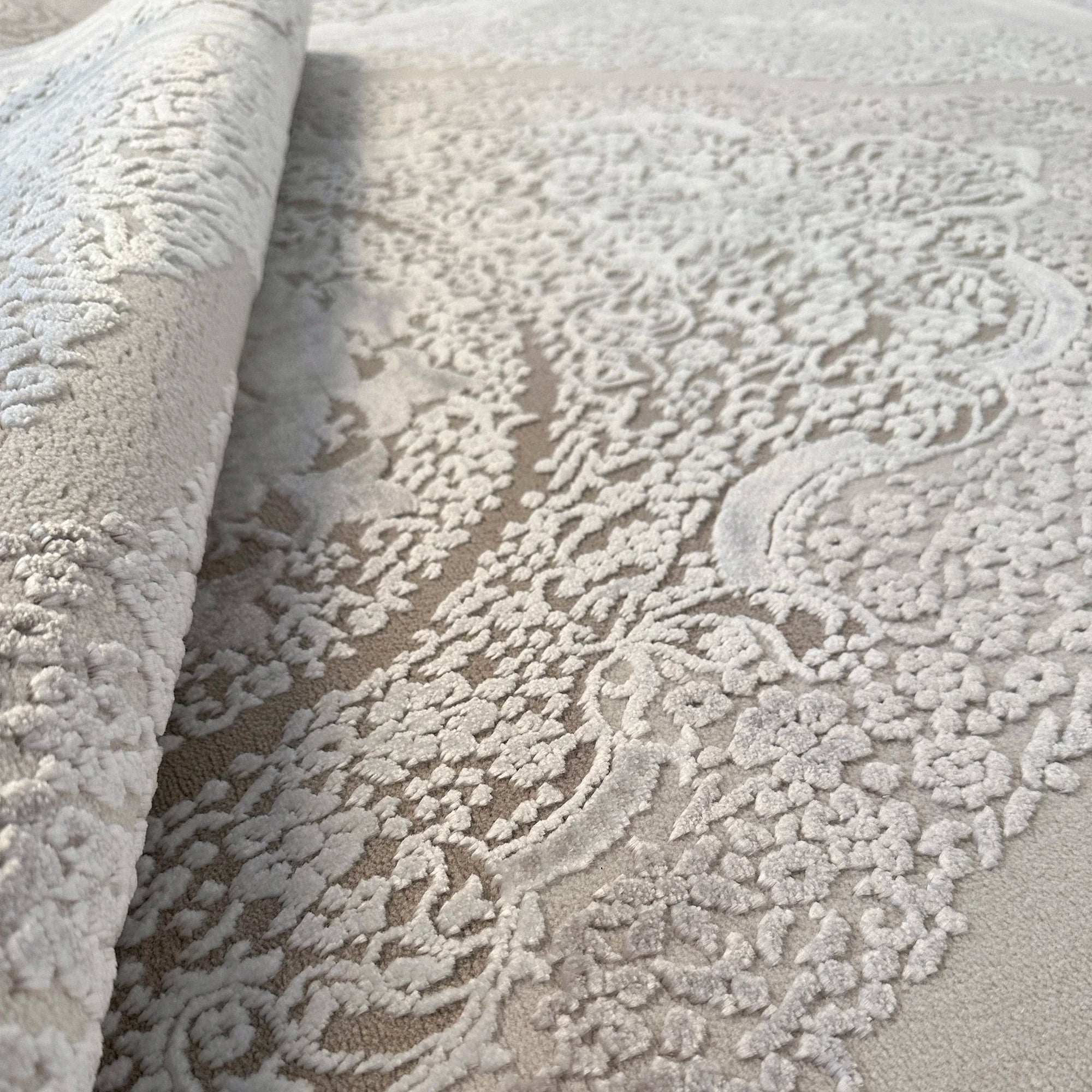 Килим кольору слонової кістки Classic Medallion привнесе традиційну елегантність у ваш дім. Його витончений центральний медальйон та м'яка палітра кольору слонової кістки створюють вишуканий вигляд, який пасуватиме до віталень, спалень та офіційних інтер'єрів. Виготовлений з міцних, легких у догляді матеріалів та створений для щоденного комфорту.