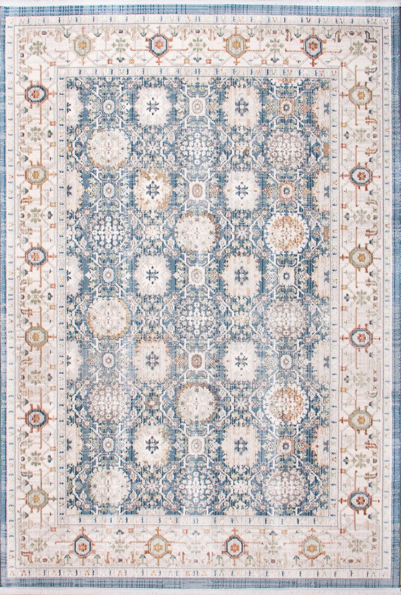 Основа темно-синього кольору з вигадливими медальйонами відтінків слонової кістки та іржі. Сміливий класичний виріб, що доповнює елегантні простори.