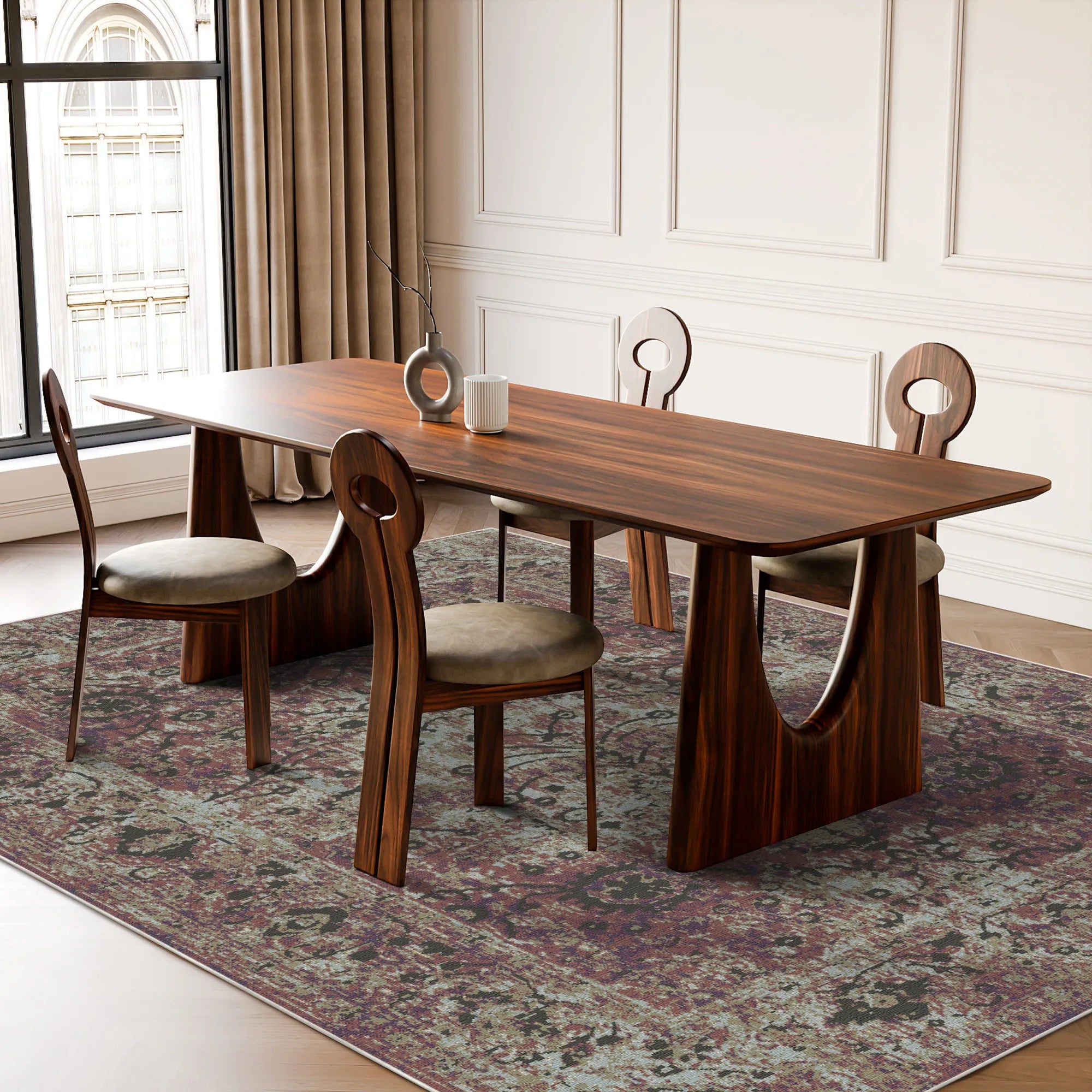 Піднесіть свій затишок теплим романтичним сяйвом та вишуканою грацією килима Marsala Sunset Floral, який можна прати . Натхненний сонячними садами історичних середземноморських вілл та незмінною красою вінтажних гобеленів з троянд, цей дизайн вирізняється класичним центральним квітковим медальйоном, оточеним ритмічним танцем лоз. Пристрасна палітра насиченого теракотового мюрдуму та пильної троянди підкреслюється ніжними акцентами кольору вугілля та античного золота, все це з майстерним покриттям під каміння. Цей ефект потертості надає виробу автентичного характеру рідкісної текстильної реліквії, яка з плином часу досягла досконалості. Це бездоганний вибір для затишної традиційної вітальні, похмурої головної спальні або вишуканої обідньої зони, яка прагне поєднати історичну авторитетність зі сміливою та привабливою атмосферою.