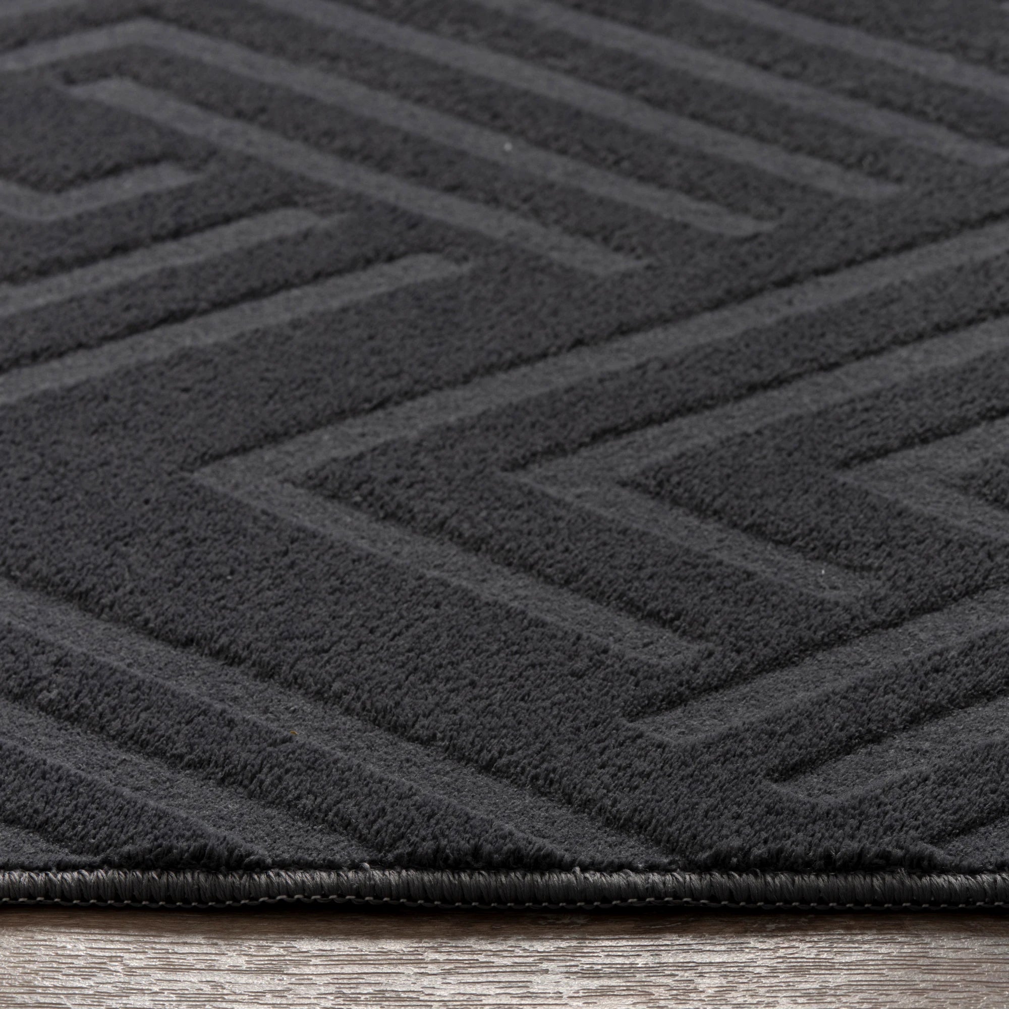 Додайте нотку сучасної структури за допомогою нашого килима-лабіринту кольору вугілля. Його захопливий 3D-геометричний візерунок та плюшева текстура з високими та низькими елементами створюють вигляд вишуканого комфорту, а міцний дизайн ідеально підходить для повсякденного життя.
