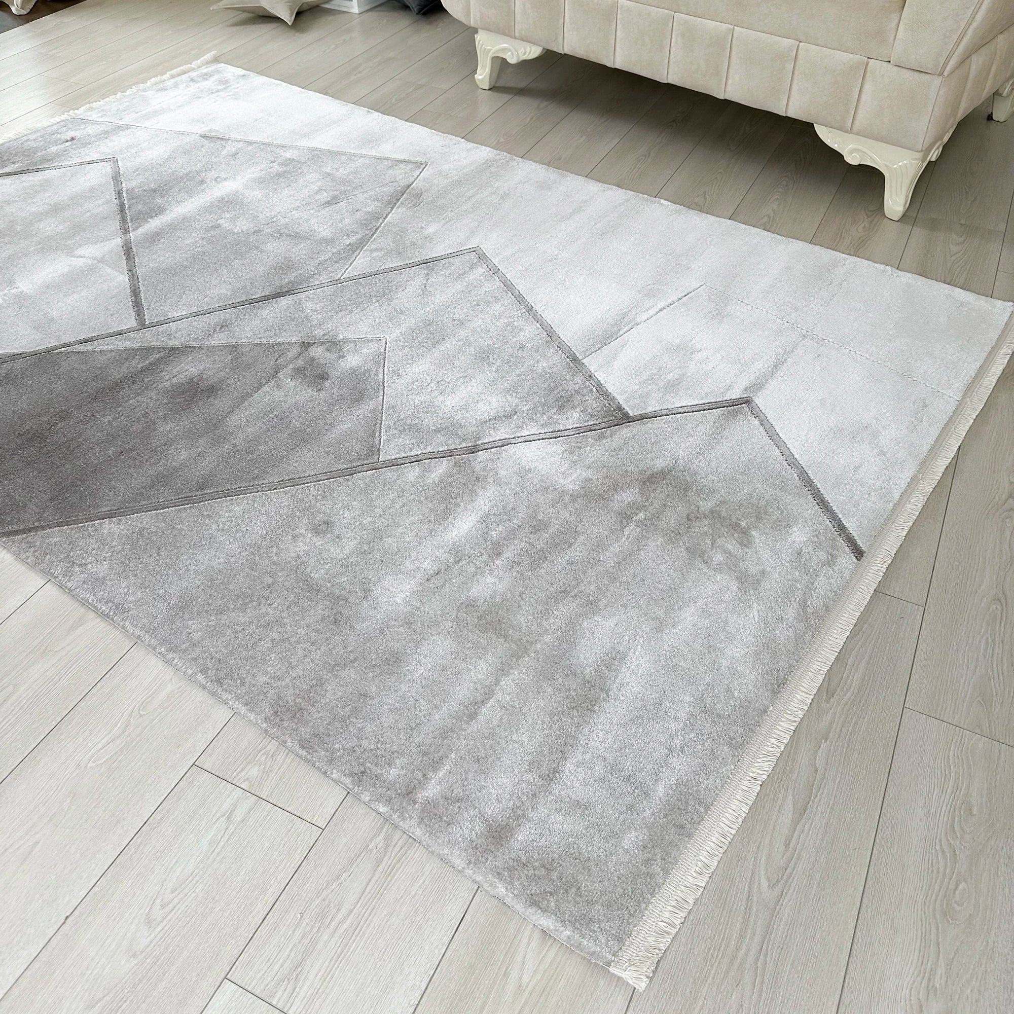 Цей килим, у якому переважають заспокійливі нейтральні тони , такі як попелясто-коричневі, бежеві та кремово-білі, ідеально доповнює як мінімалістичний, так і еклектичний стилі декору. Він створює сучасний фокусний центр, не перекриваючи основні кольори кімнати.