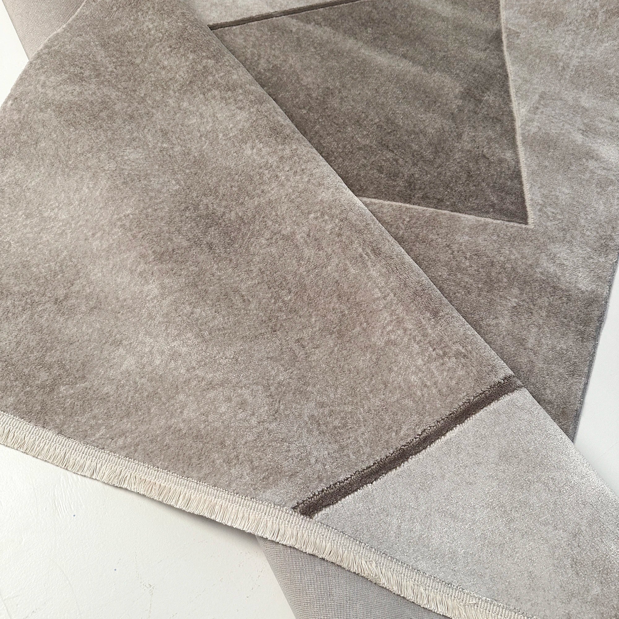 Цей килим з абстрактних панелей – сміливе та сучасне твердження, яке кидає виклик традиційному дизайну килимів. Дизайн вирізняється майстерним поєднанням геометричних панелей різних розмірів, що надає килиму тривимірного та архітектурного вигляду.