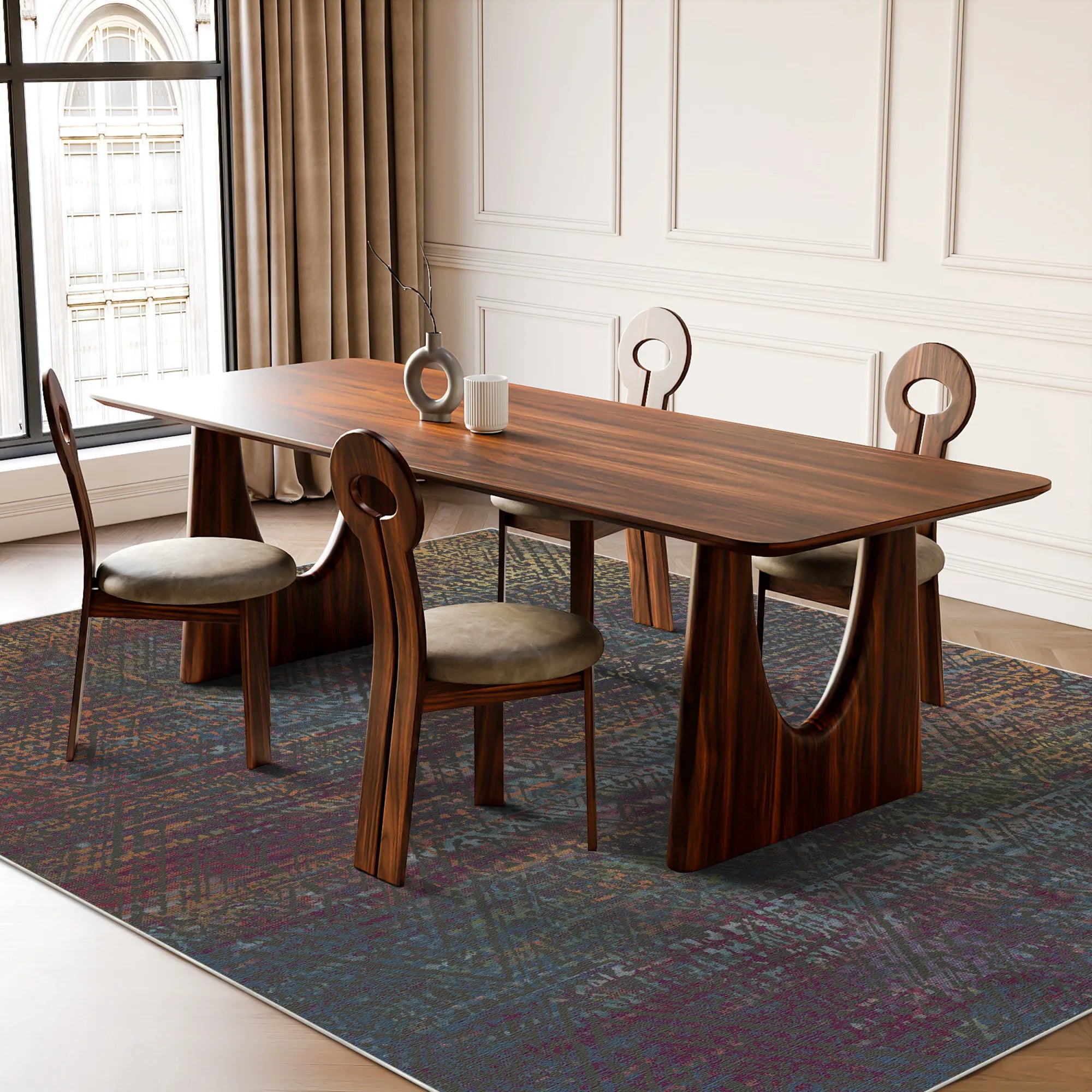 Майстерно розроблений, щоб поєднати цю захоплюючу «стерту» естетику з суворими вимогами сучасного побуту, килим Mystic Horizon Lattice виготовлений з високоякісних поліефірних волокон високої щільності. Така конструкція забезпечує оксамитовий, схожий на хмари дотик до ніг, водночас пропонуючи чудову стійкість до щоденного руху. Наша передова технологія фіксації кольору гарантує, що складні фіолетові та сині градієнти залишаються красивими та яскравими після кожного прання. Для максимального спокою він має високоякісну, інтегровану протиковзку основу, яка міцно тримається на вашій паркетній або плитковій підлозі, гарантуючи, що килим залишається ідеально рівним та надійним без необхідності додаткових підкладок. Цей килим повністю можна прати в пральній машині та оптимізовано для сумісності з робот-пилососом, що привносить позачасову чарівність абстрактного племінного шедевра у ваш дім без жодного стресу для догляду.