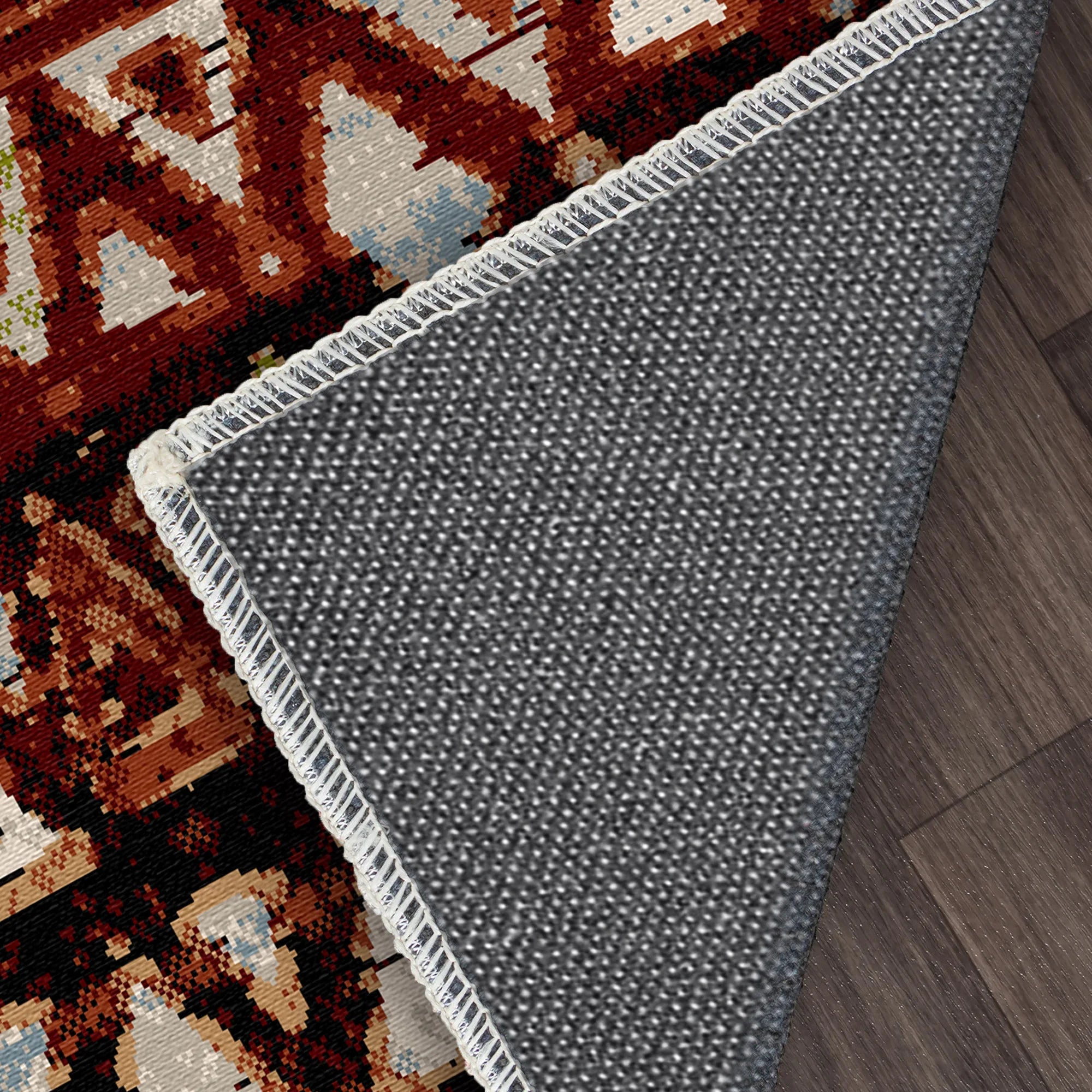 Нековзний, комфортний, без складок. Кожен килим має надійну основу, яка надійно тримає його на місці, навіть у місцях з високою прохідністю, таких як коридори чи вітальні.