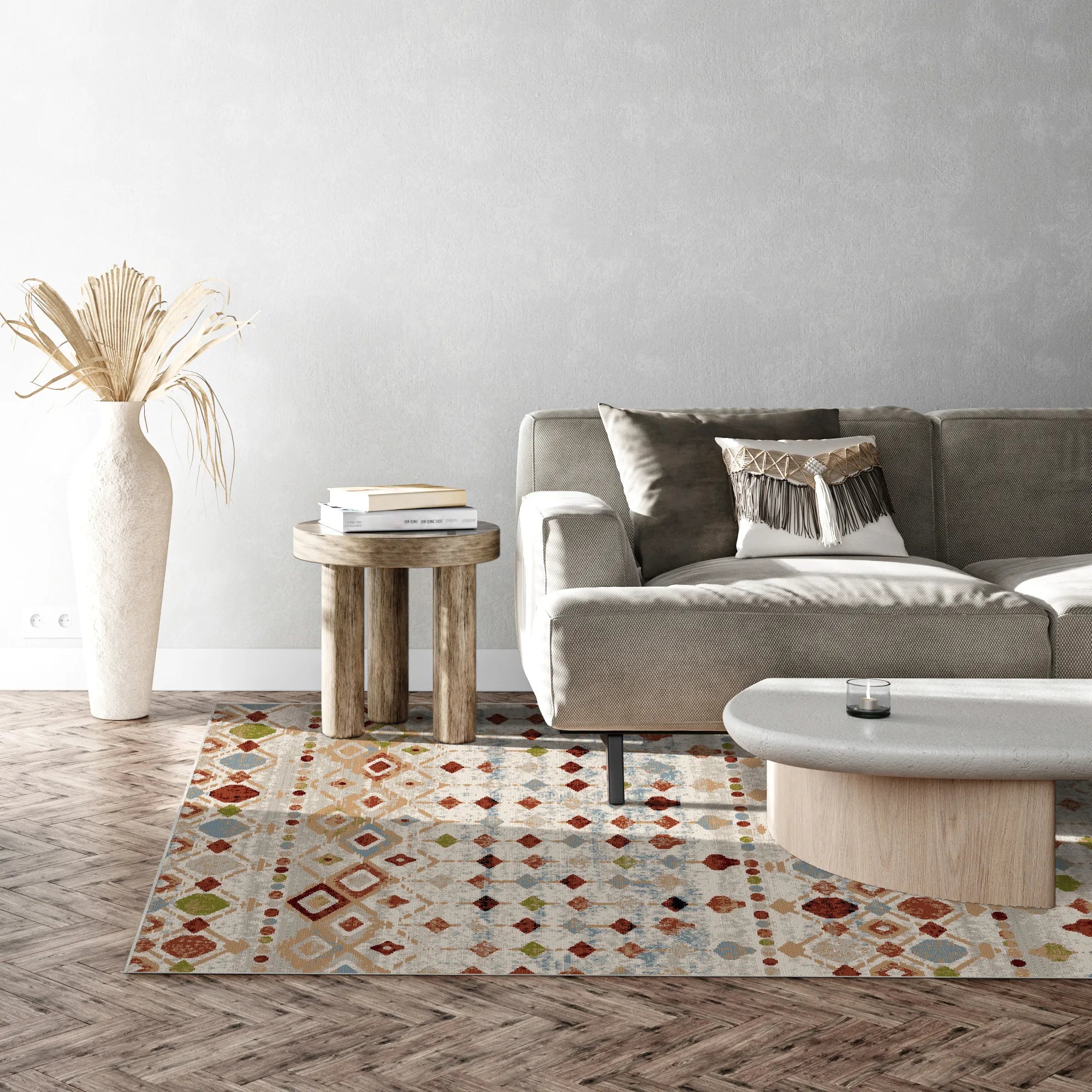 Вловіть яскраву душу та художню енергію американського Південного Заходу за допомогою килима Sedona Multi Tribal Geometric, який можна прати . Цей жвавий дизайн є втіленням кольору та культури, демонструючи фірмові горизонтальні смуги геометричних мотивів серії, виконані в жвавій палітрі. Теплий кремовий та бежевий фон служить яскравим полотном для складних ромбоподібних та зигзагоподібних візерунків, які танцюють у насичених відтінках іржаво-червоного, теракотового, небесно-блакитного, оливково-зеленого та сонячно-охристого. Він нагадує захоплюючий контраст червоного каміння на тлі чистого блакитного неба, привносячи святкове, богемне тепло в будь-який простір. Це ідеальний центральний елемент для веселої сімейної кімнати, еклектичної обідньої зони або творчої студії, яка процвітає на натхненні та радості.