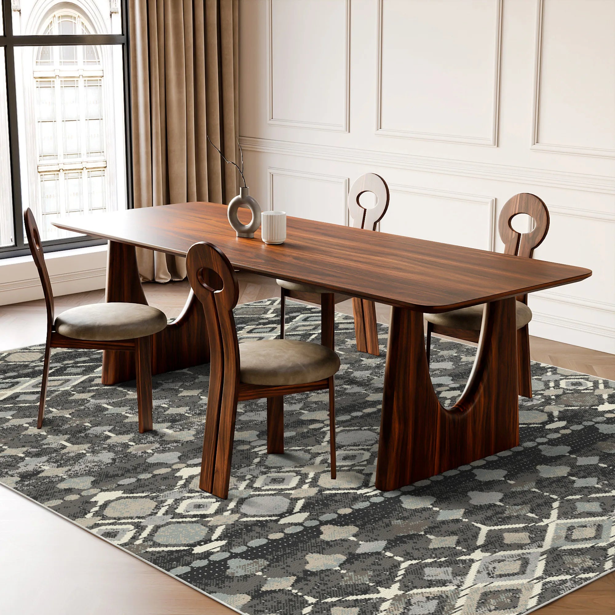Ми вважаємо, що сміливий стиль повинен супроводжуватися безкомпромісною довговічністю. Саме тому цей килим виготовлений з високоякісних поліефірних волокон високої щільності, які забезпечують м’яку, привабливу текстуру під ногами, водночас володіючи міцністю, щоб витримувати високий рівень ходьби. Темна, насичена палітра природно прощає повсякденне життя, а властива волокну стійкість до плям гарантує, що чіткий контраст візерунків залишається чітким з часом. Щоб забезпечити безпечне та безпечне середовище для вашої родини, ми інтегрували високоякісну нековзну основу , яка міцно кріпиться до паркетної підлоги, плитки або ламінату, усуваючи потребу в окремій підкладці для килима та запобігаючи ковзанню.