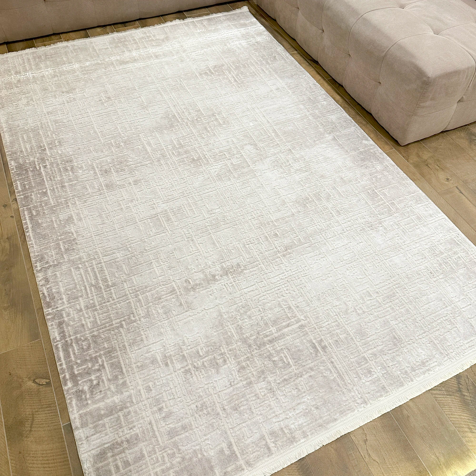 Сучасний текстурований килим Whisper Grid з абстрактним принтом | Бежевий